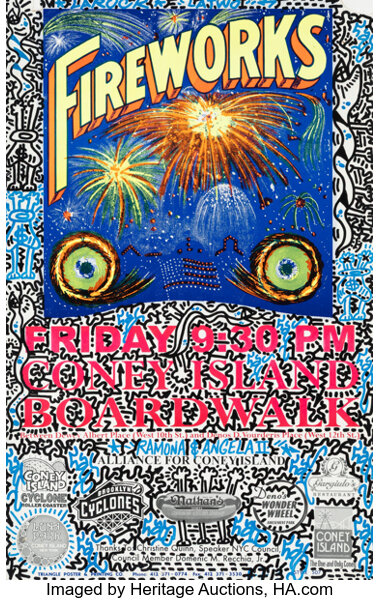 Ink on recycled Coney Island poster