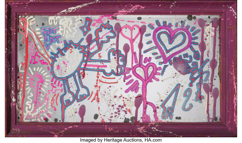 Acrylic, spray paint, and ink on mirror