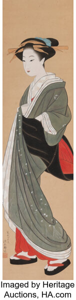 Unknown Artists (Japanese, 19th century), Bijin in Kimono, ink and color on...
