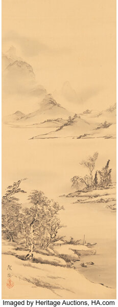 Anonymous (Japanese, 19th century), Mountain and River Landscape, ink on si...
