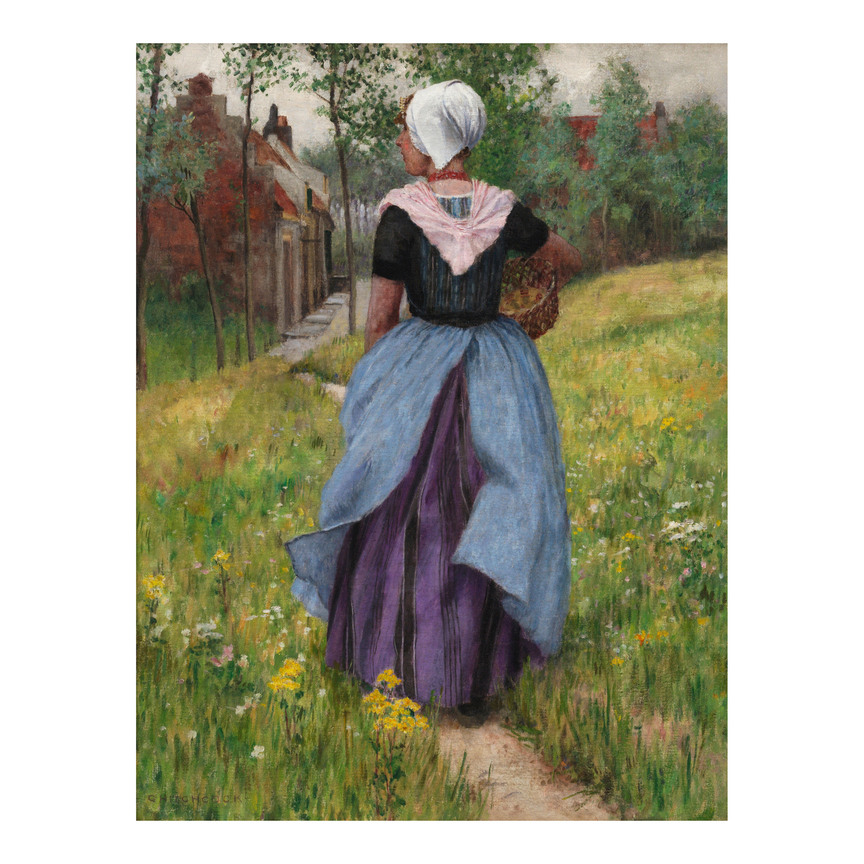 Brittany Girl on a Flowered Pathway