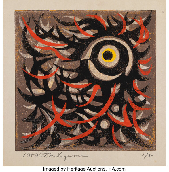 Woodblock print in colors on paper