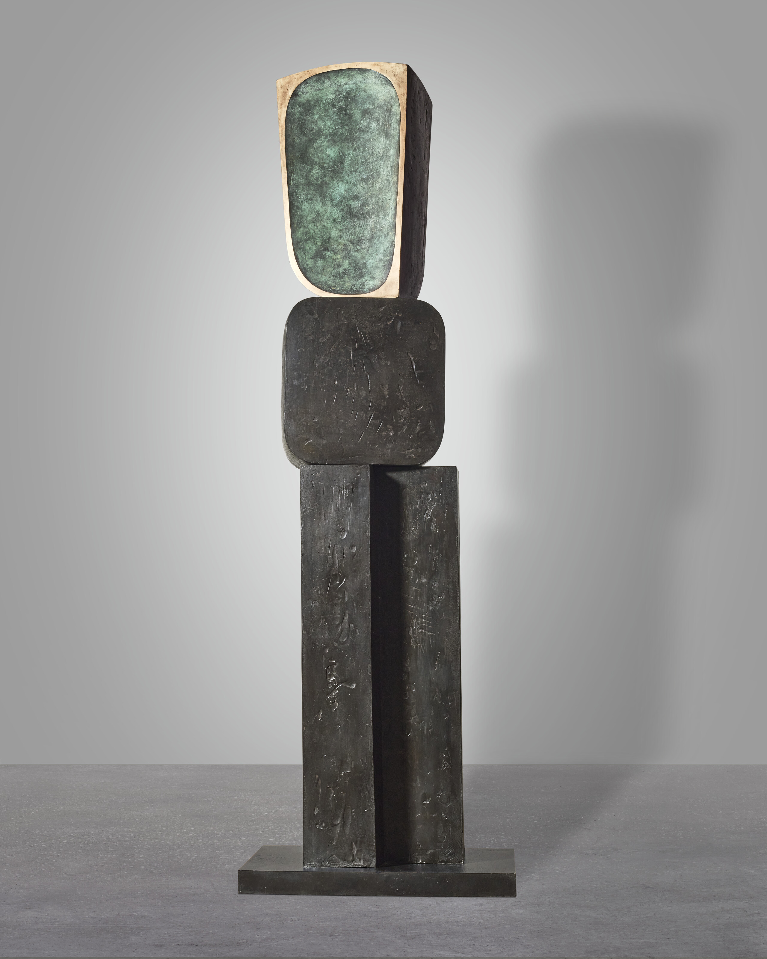 bronze with a brown patina, Isopon and brass wire on an integral concrete base