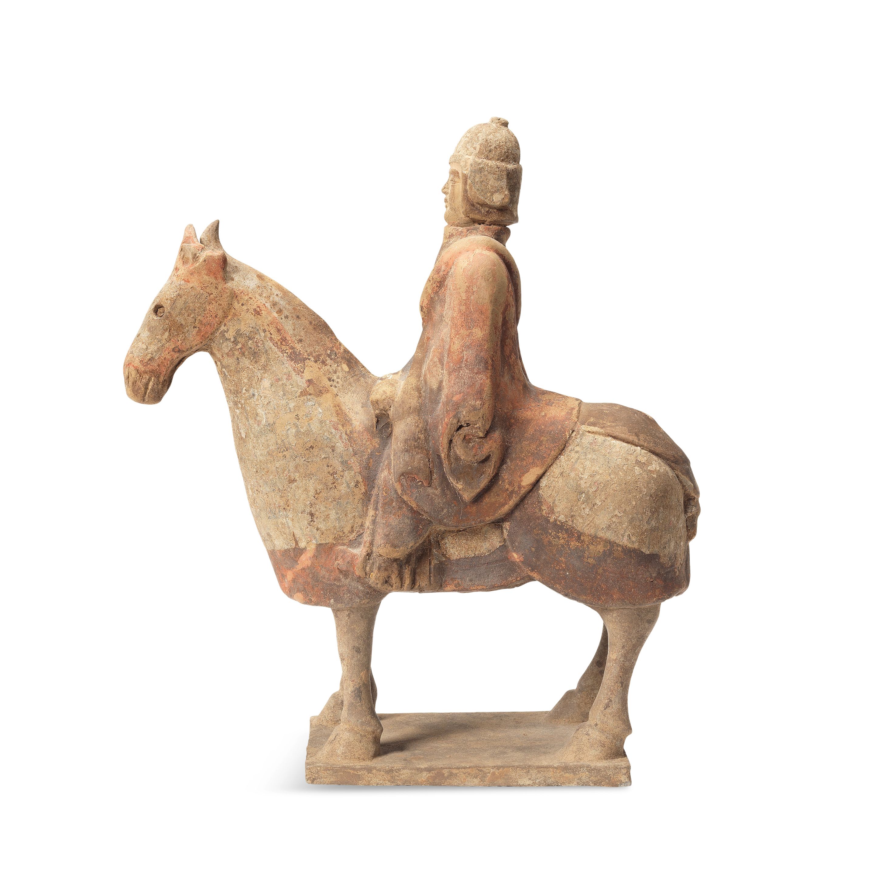 A Chinese terracotta equestrian group of a warrior on horseback