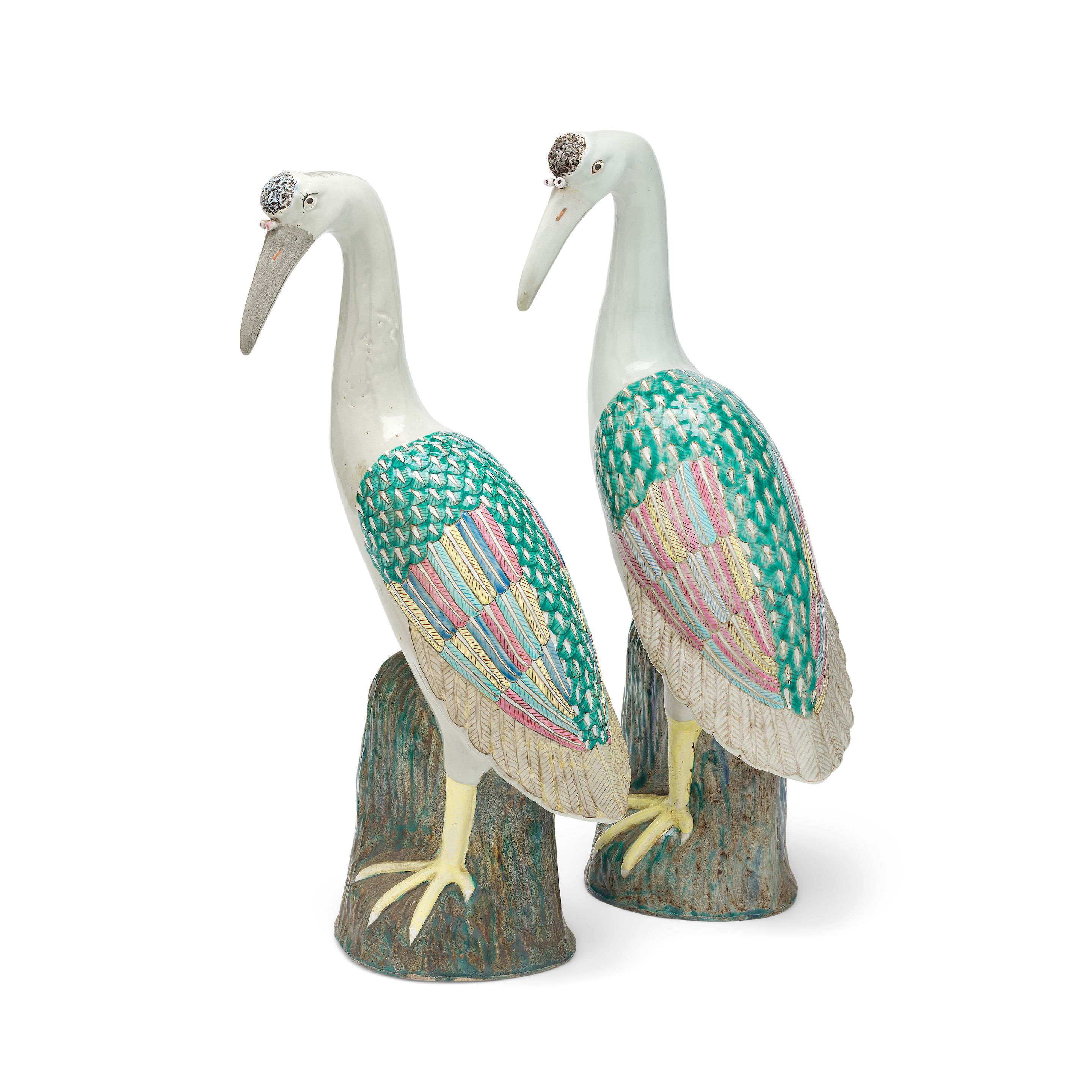 Two similar Chinese porcelain models of cranes