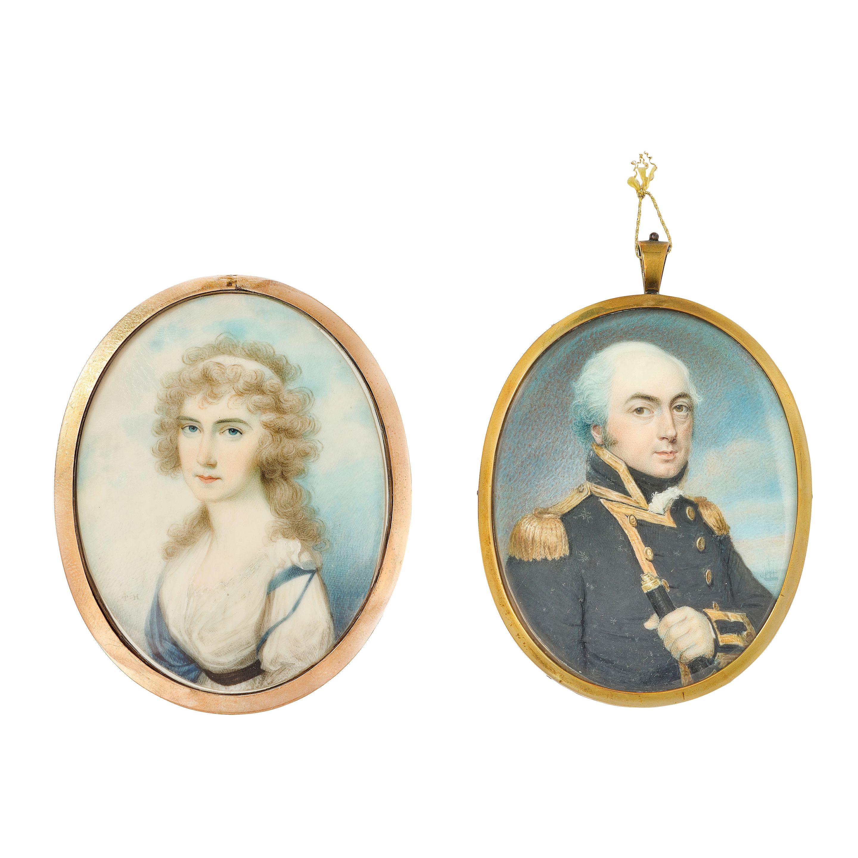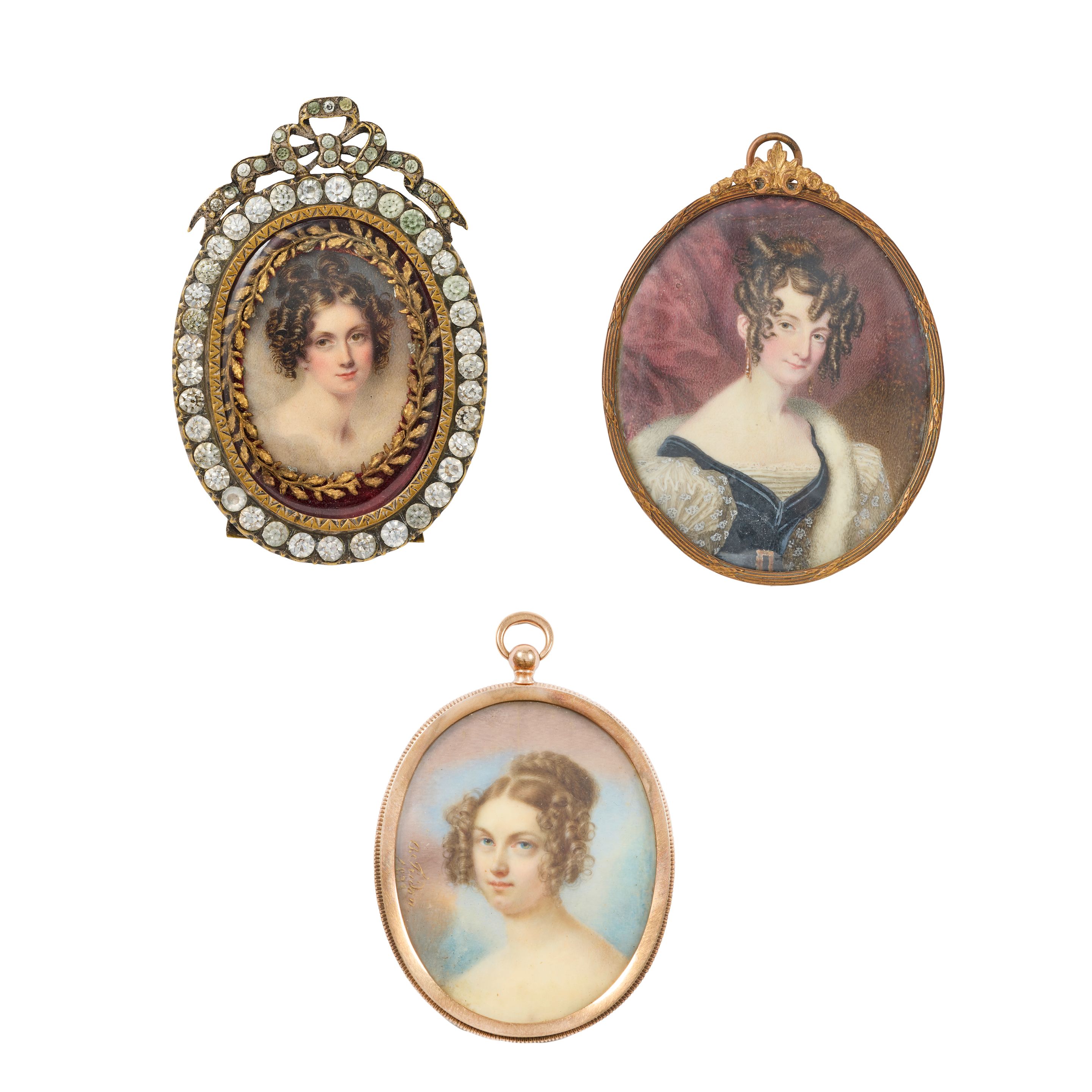 All oval, on ivory, the first in gilt metal frame, the second with the sitt...