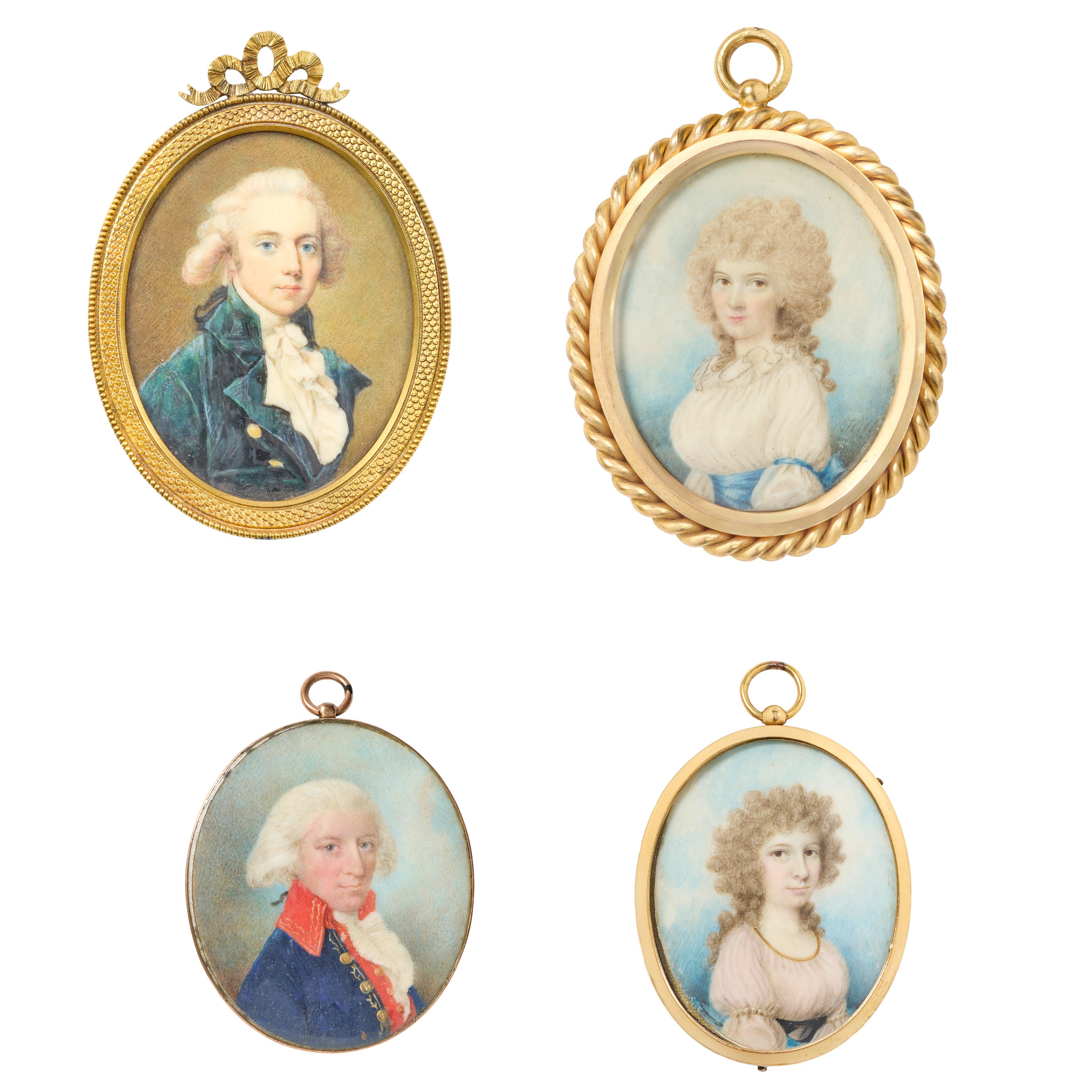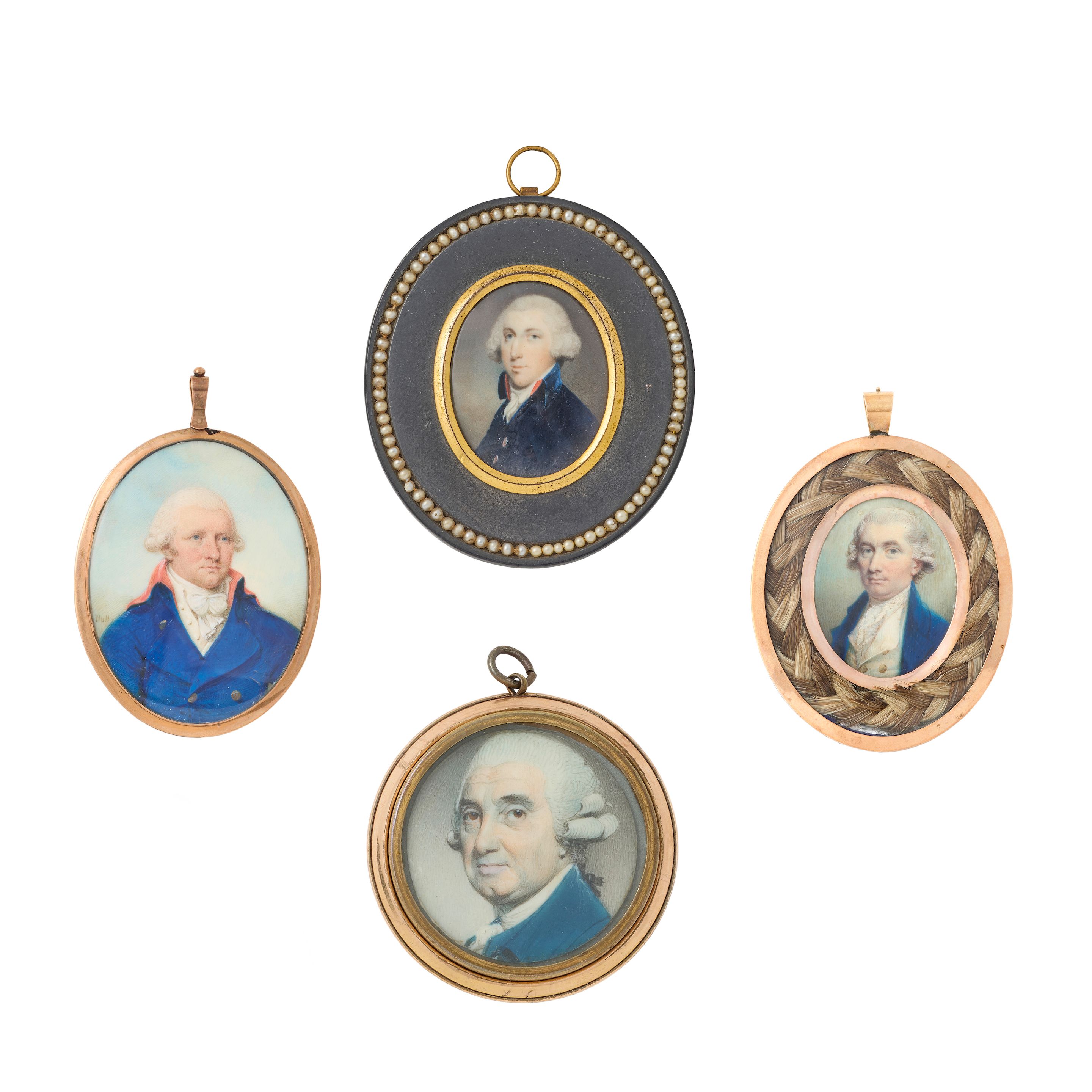 All oval, on ivory, the first sitter with powdered hair, blue jacket and wh...