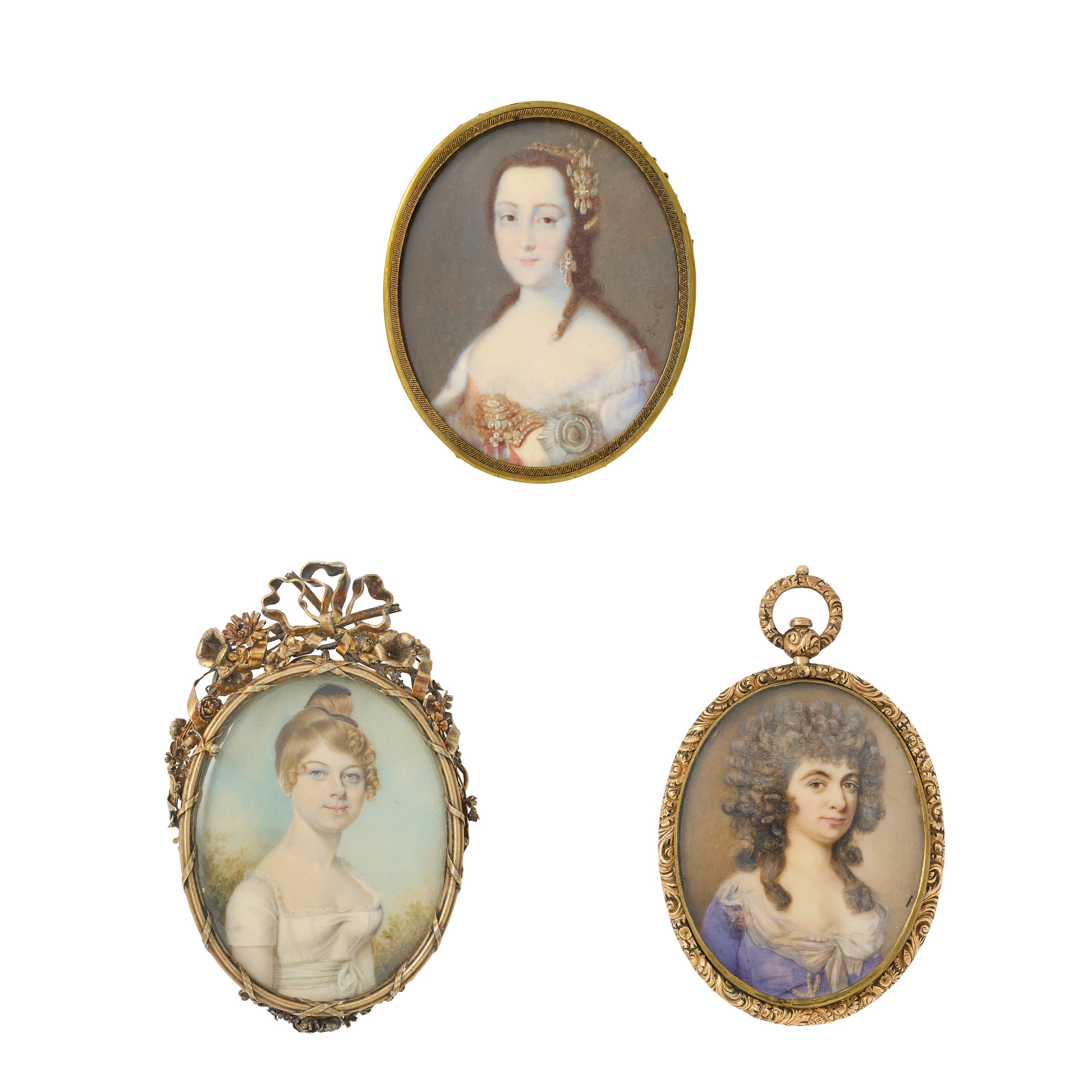 All oval, on ivory, the first sitter with powdered hair, blu...
