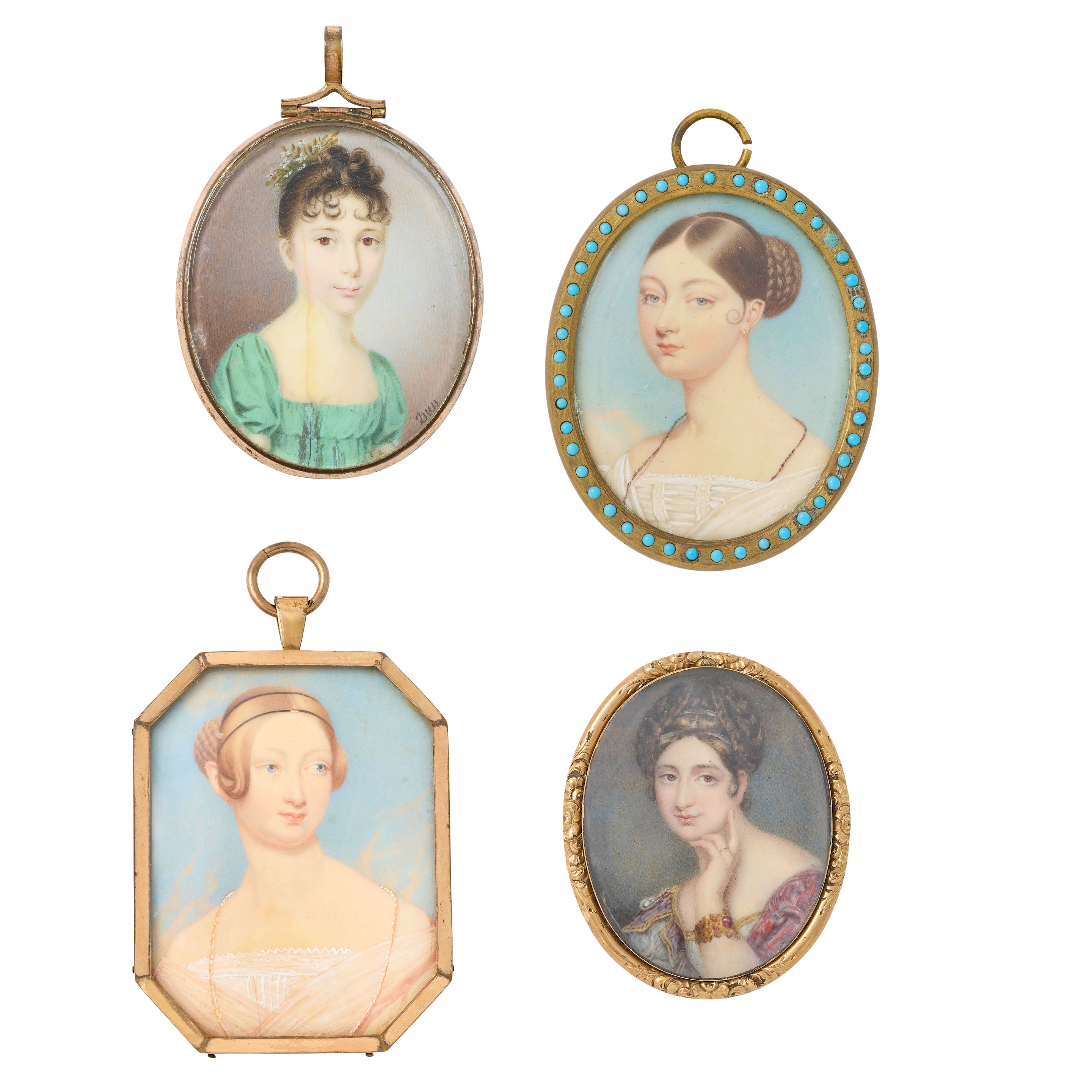 All ovals on ivory, the first sitter depicted with her brown...
