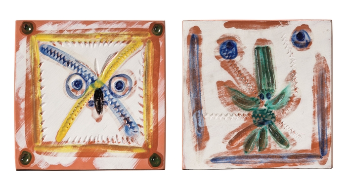 partially glazed white earthenware clay, decoration in engob...