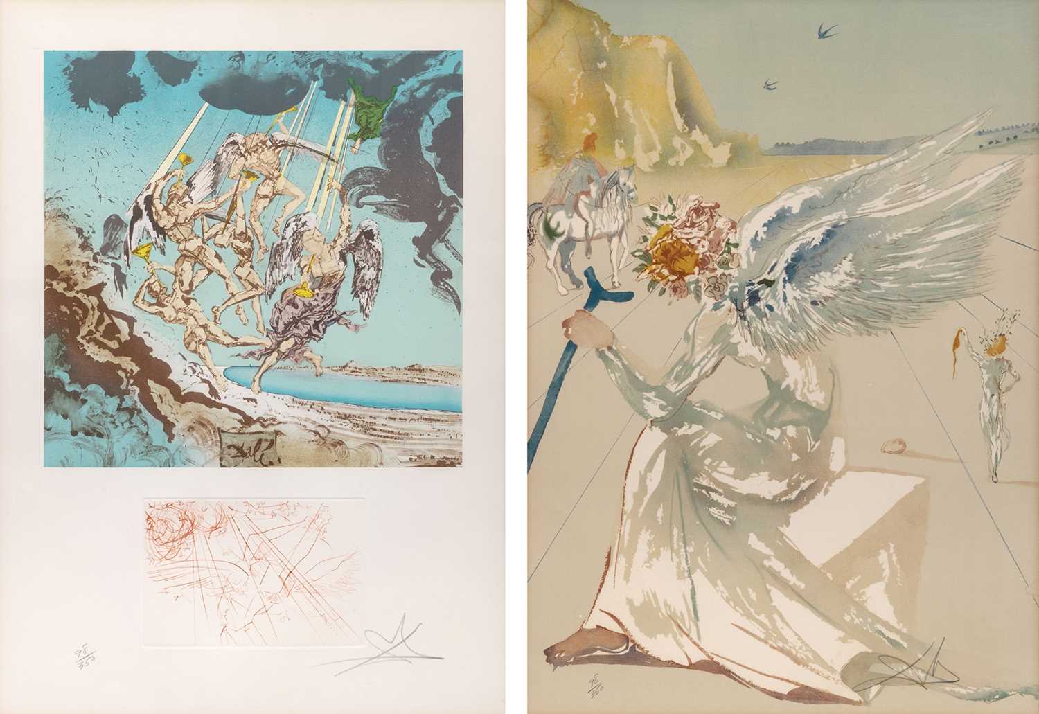 Set of two lithographs (one with drypoint remarque printed in sanguine)