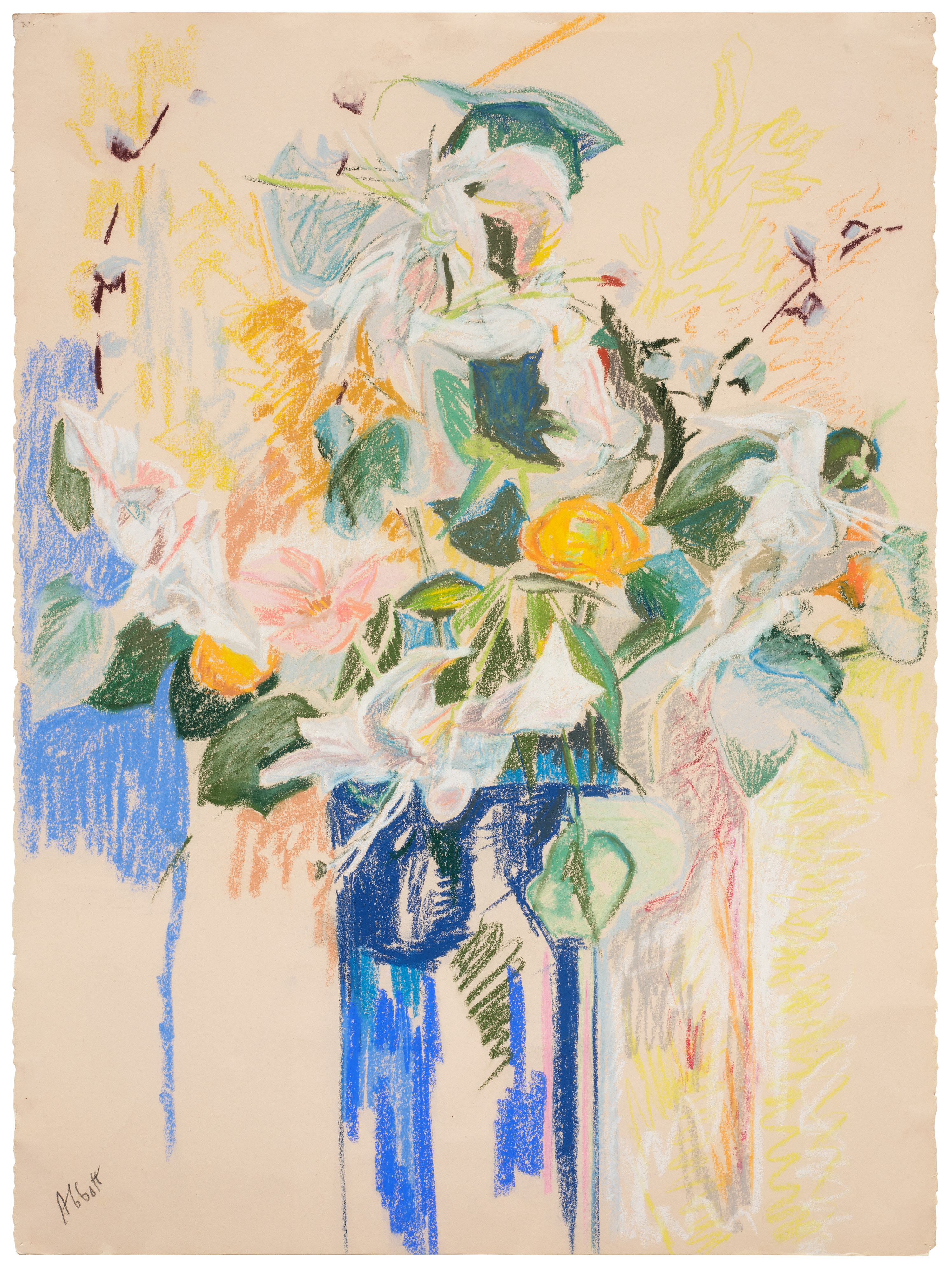 Unique pastel drawing in colors, on wove paper