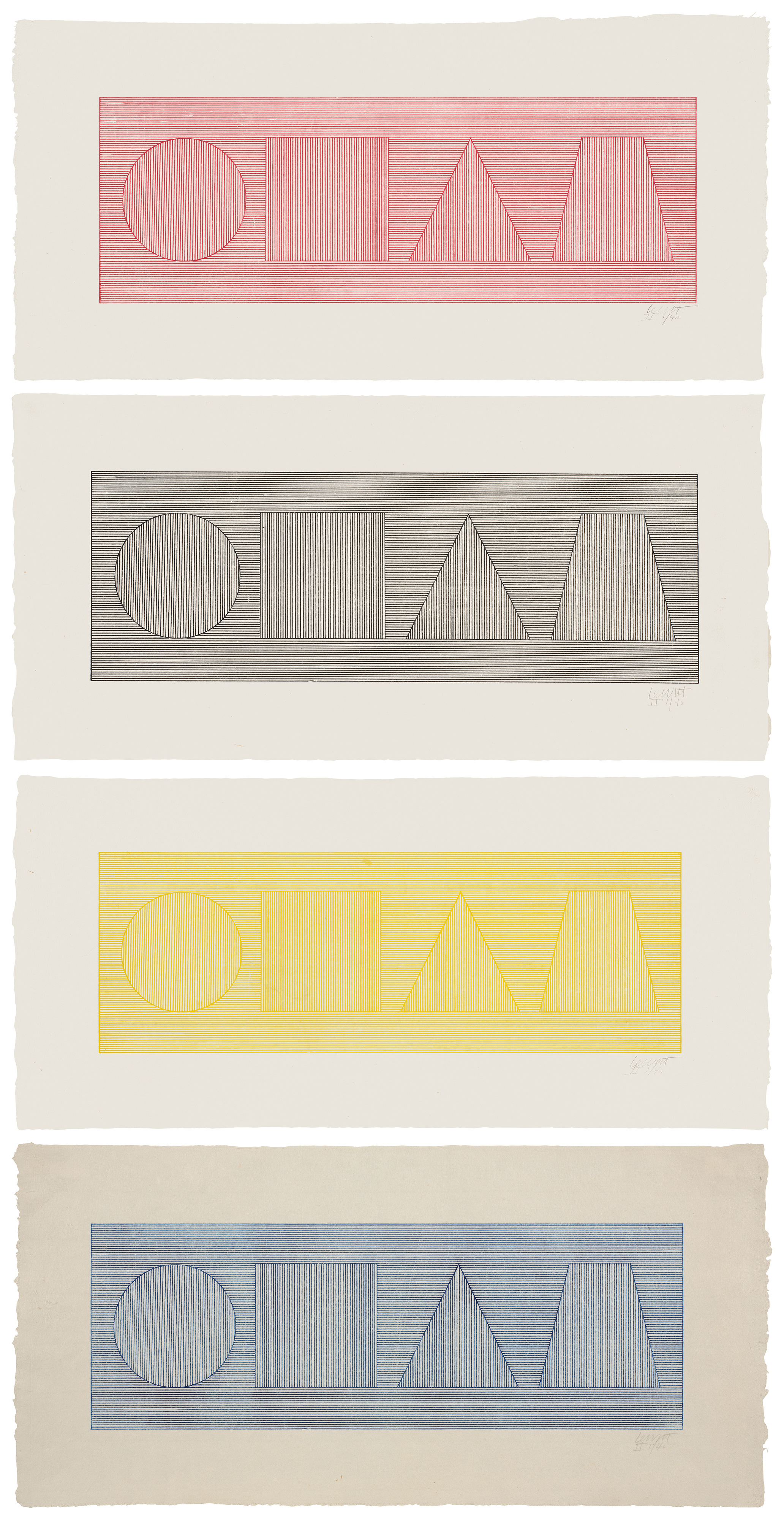 Screenprints in colors on Arches paper