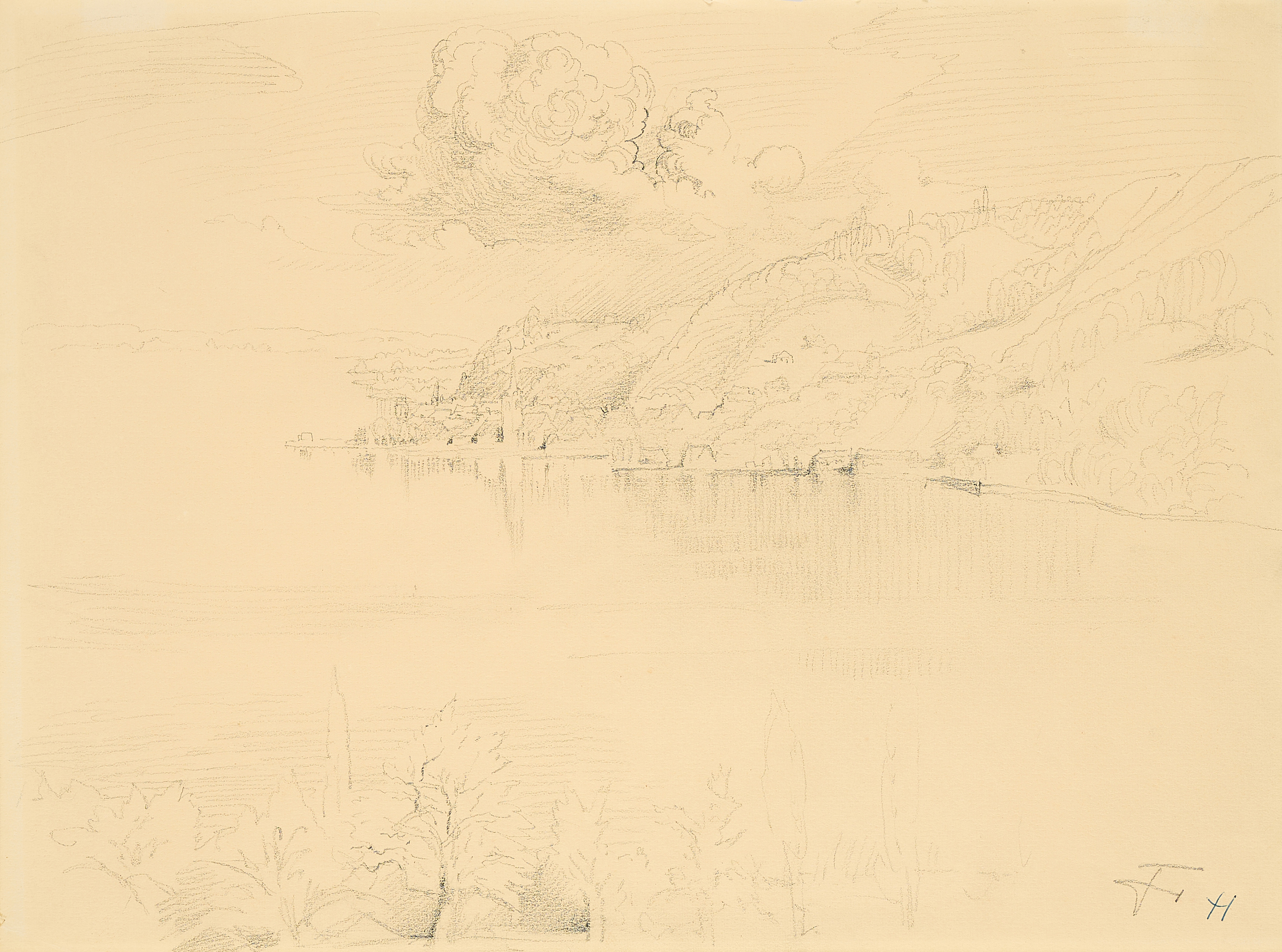 Pastel lavé et mine de graphite sur papier pelure